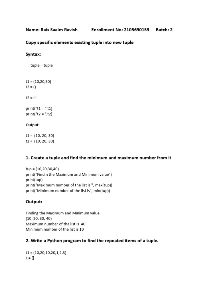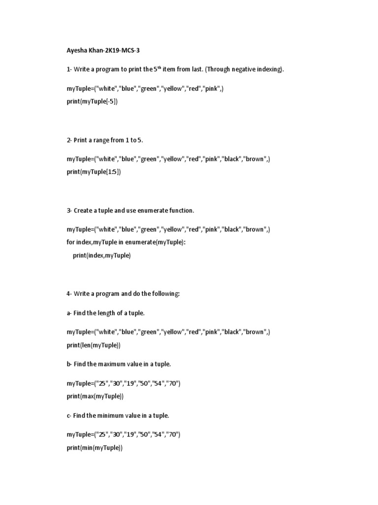 Tuple - Scenario Based Python Programs | PDF | Computer Programming ...