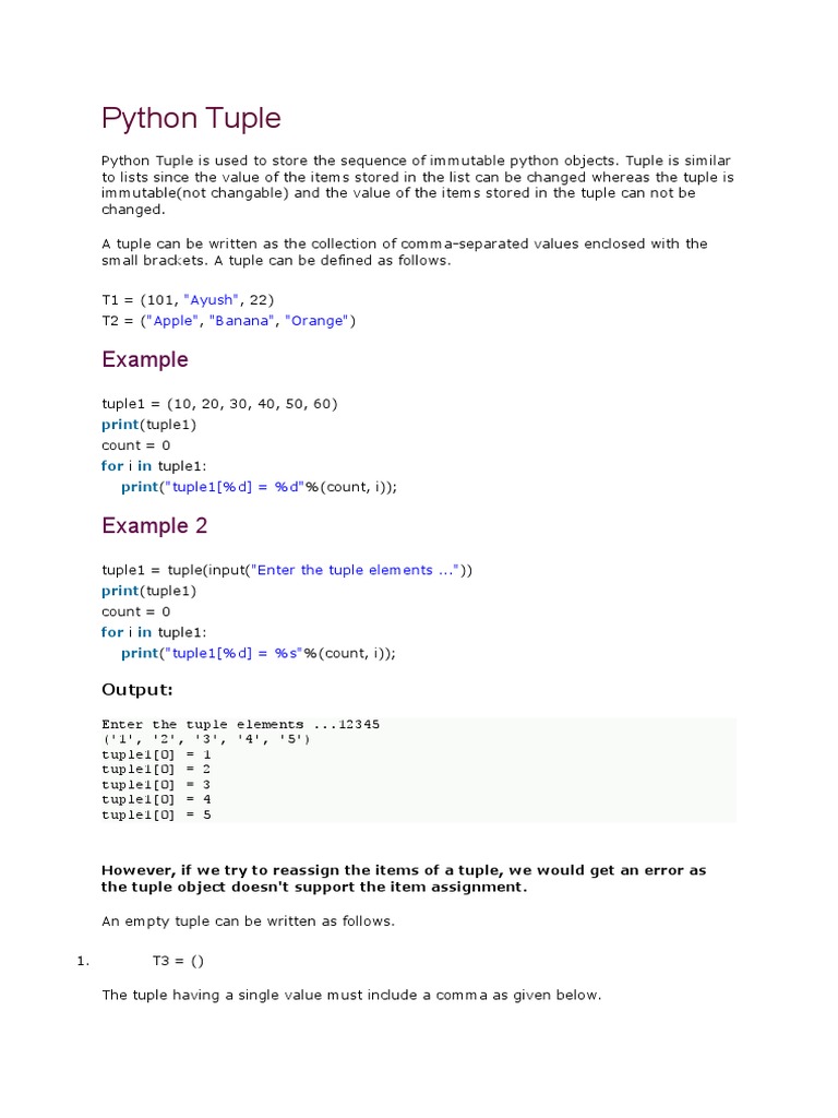 (V) Tuple in Python | PDF | Function (Mathematics) | String (Computer ...