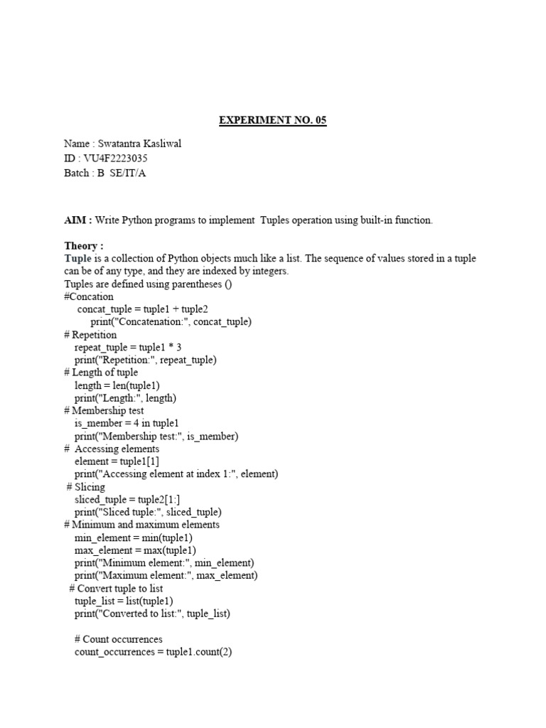Tuple and its Operations - Python Programming (P2 Python) - Studocu