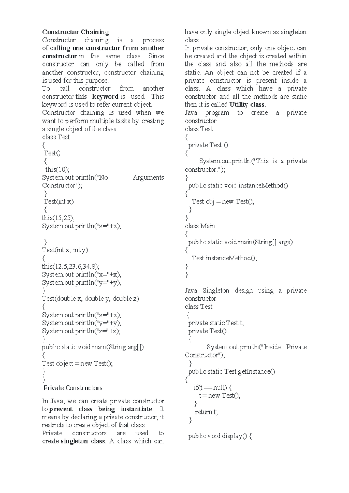 Constructor Chaining and Private Constructors in Java (CS101) - Studocu