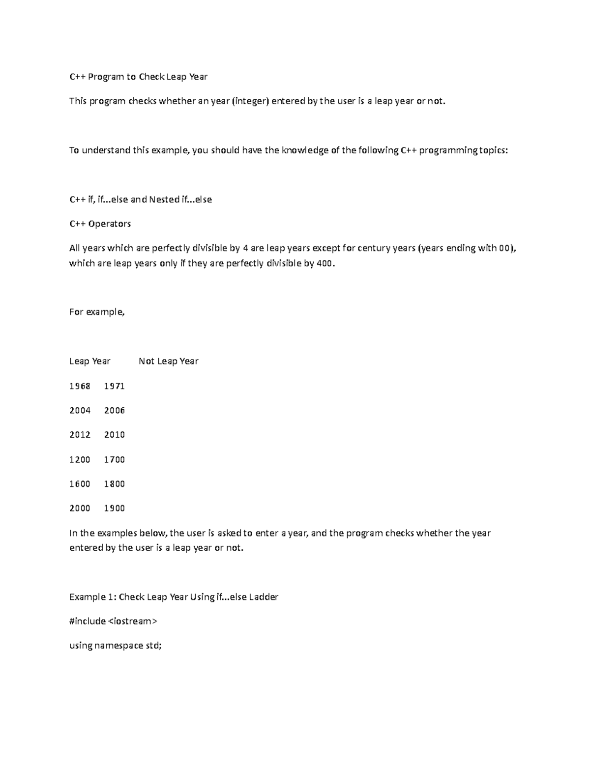 C 12 - Assignment - C++ Program to Check Leap Year This program checks ...