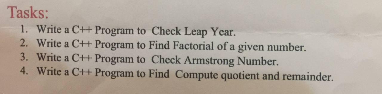 Solved Tasks: 1. Write a C++ Program to Check Leap Year. 2. | Chegg.com