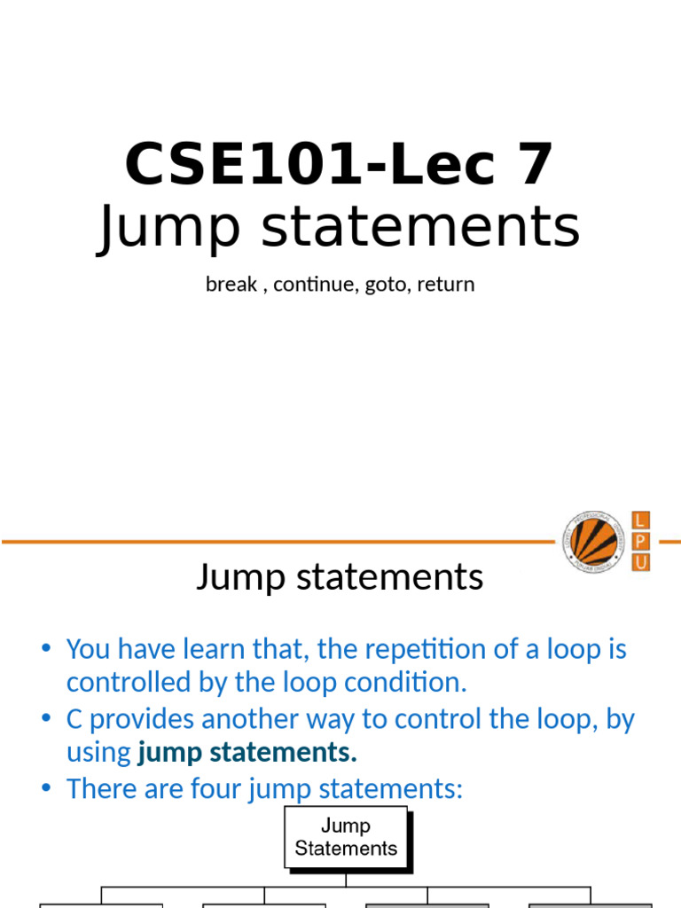 C Jump Statements: Break, Continue, Goto, Return | PDF | Control Flow ...