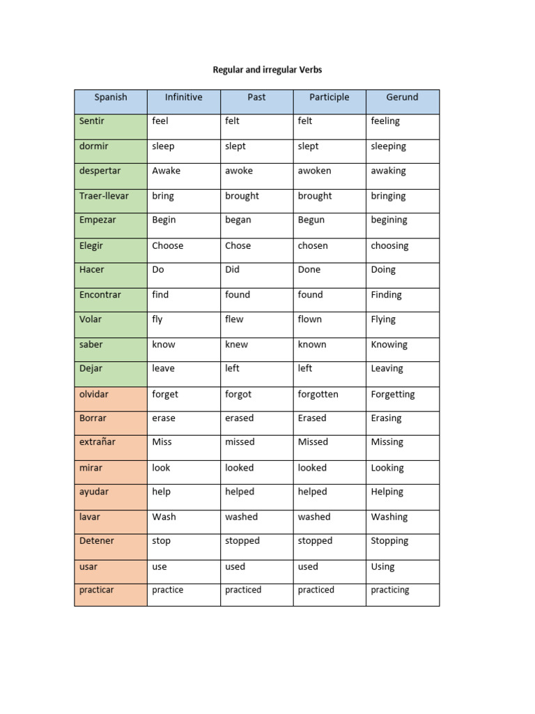 What Are Regular And Irregular Verbs In Spanish - Design Talk