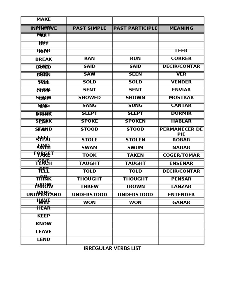 List of 100 spanish irregular verbs - dsaebayarea