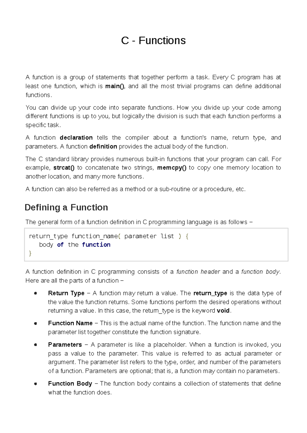 Function Declaration in C - User Defined Functions - Pedagogy Zone