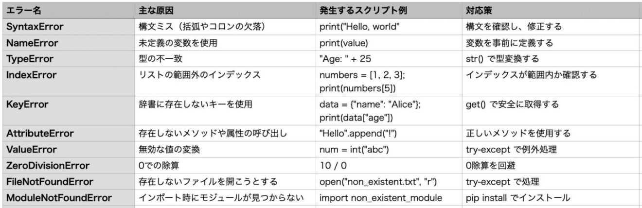 Python初心者がよくつまずくエラー10選と解決法まとめ|原因から対処法までやさしく解説 | Python-memo|自動化・AI・Web ...