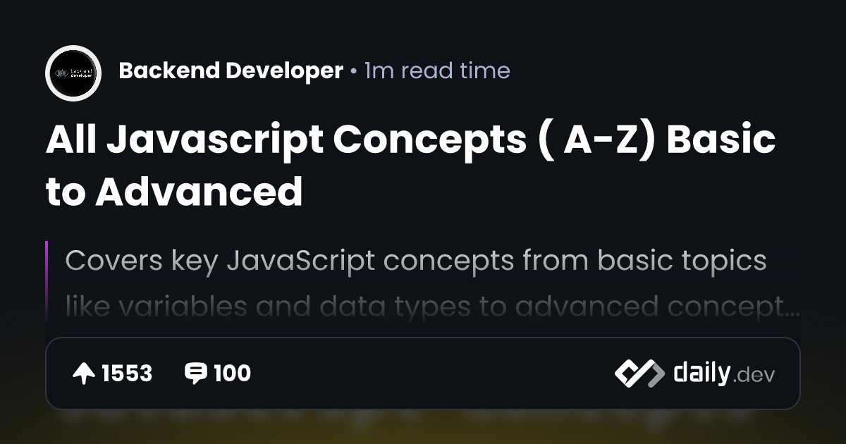 All Javascript Concepts ( A-Z) Basic to Advanced | daily.dev