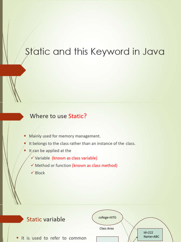 Lecture 6 Static and this Keyword in Java - Copy | PDF | Programming ...