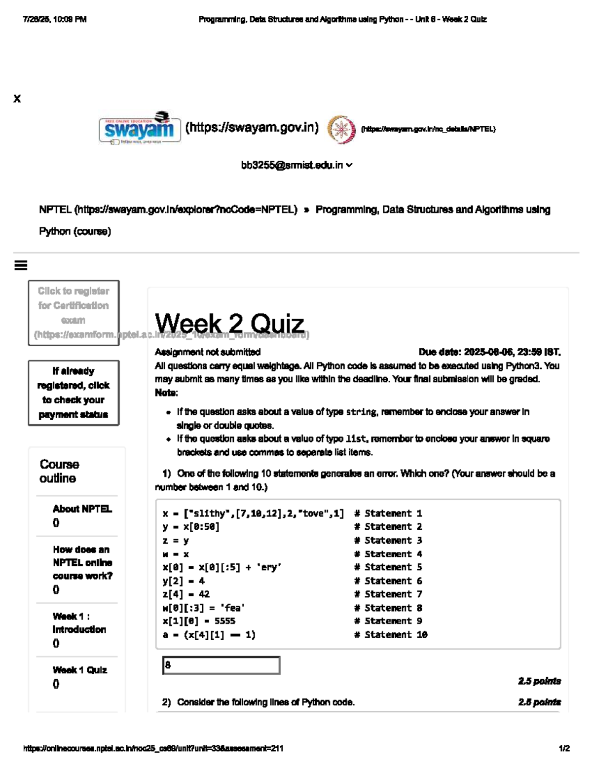 NPTEL: Programming ,Data Structures and Algorithm Using Python week 2 ...