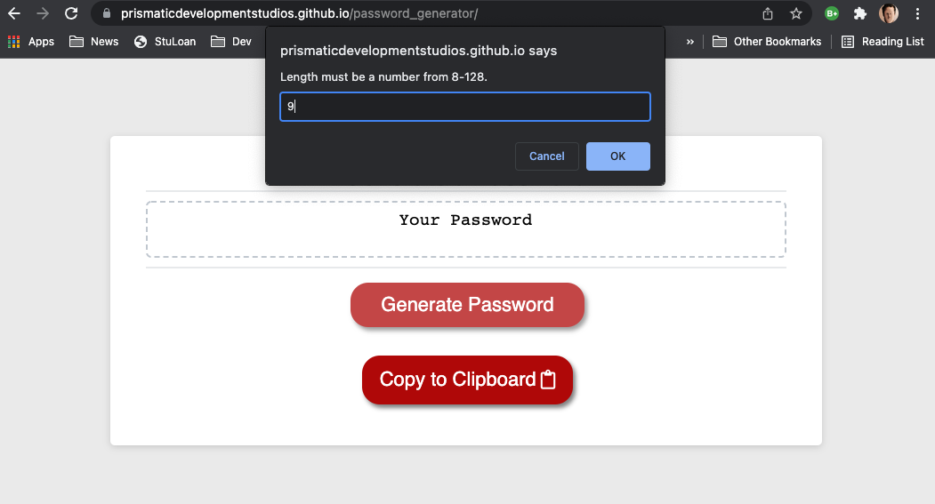 GitHub - byronontheboard/js-password-generator: Creating a password ...