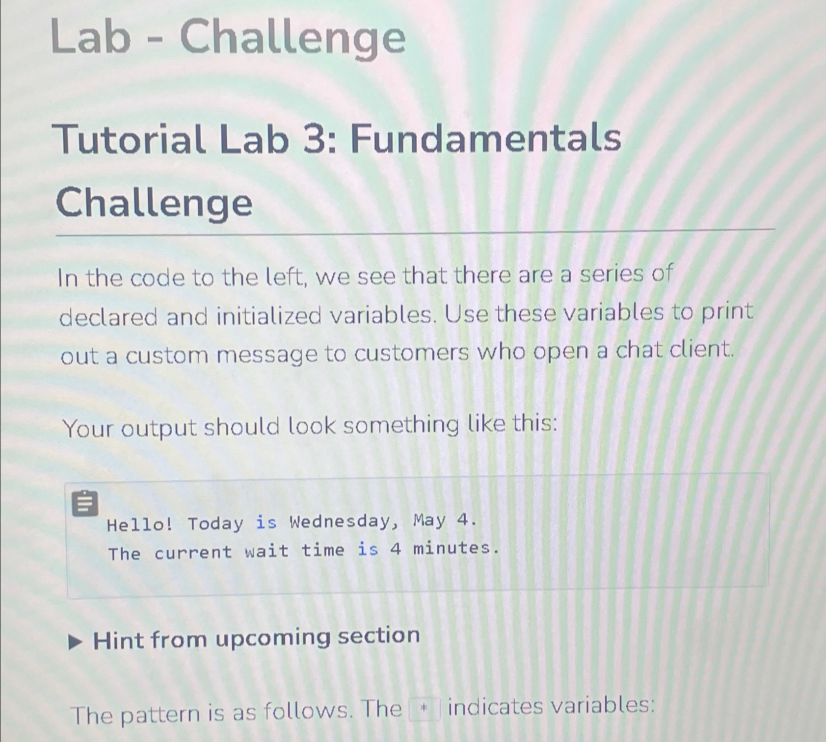 Lab - ChallengeTutorial Lab 3: | Chegg.com