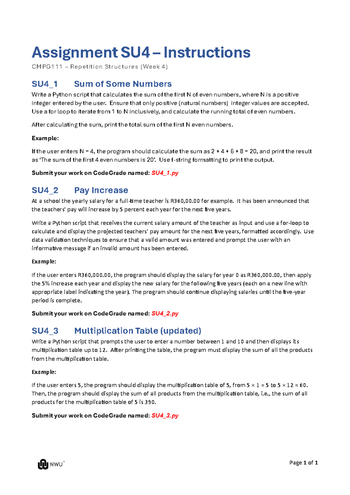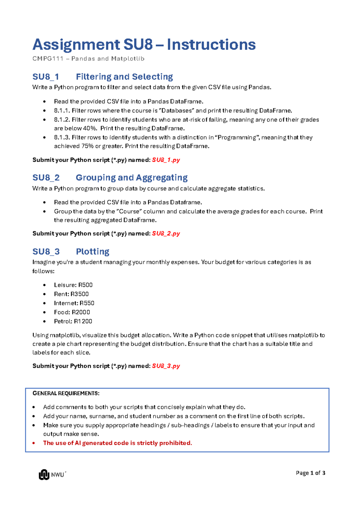 Assignment SU3 instructions - Page 1 of 3 Assignment SU 3 ...