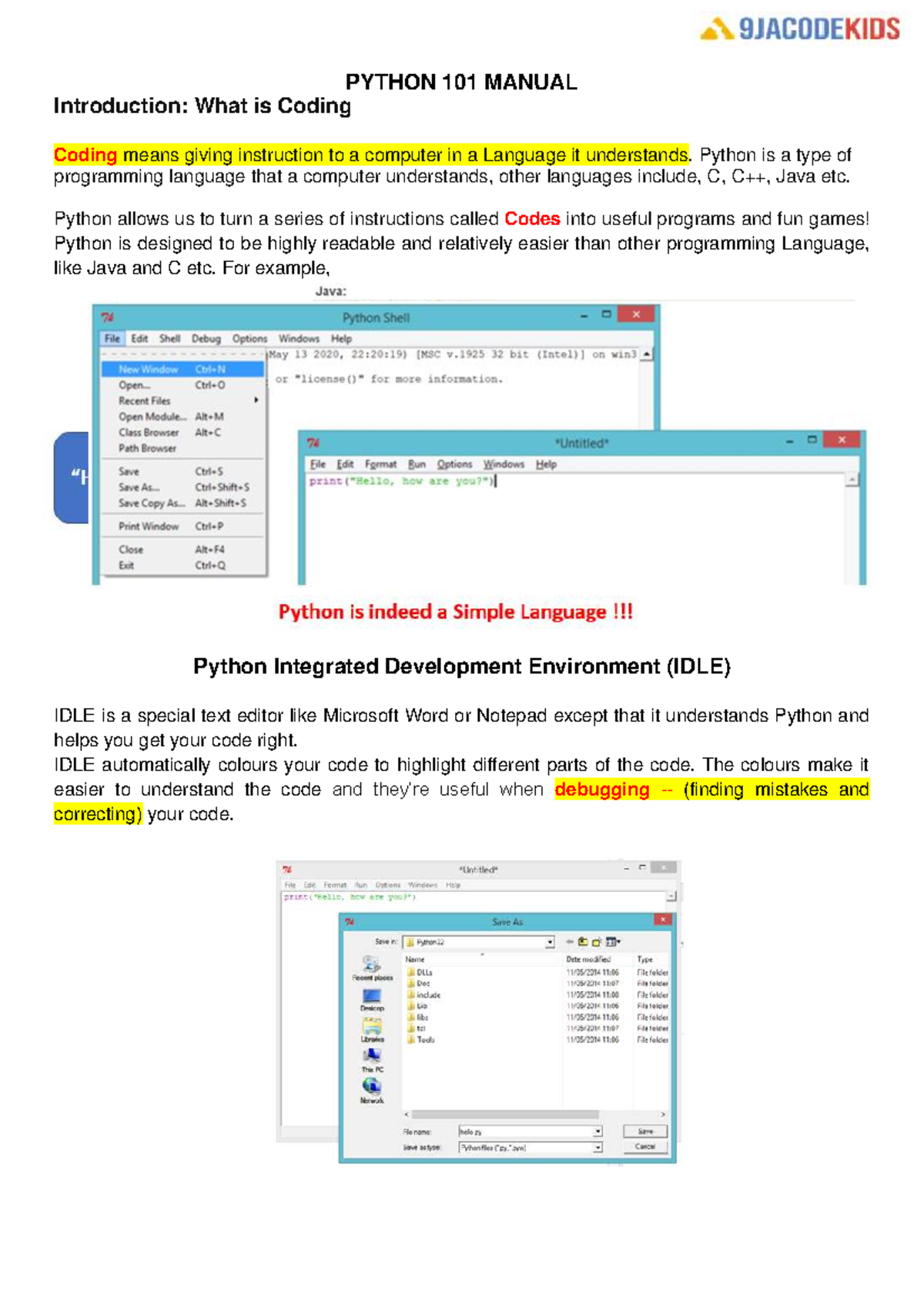 Python 101 Manual: Intro to Coding and Projects Guide - Studocu