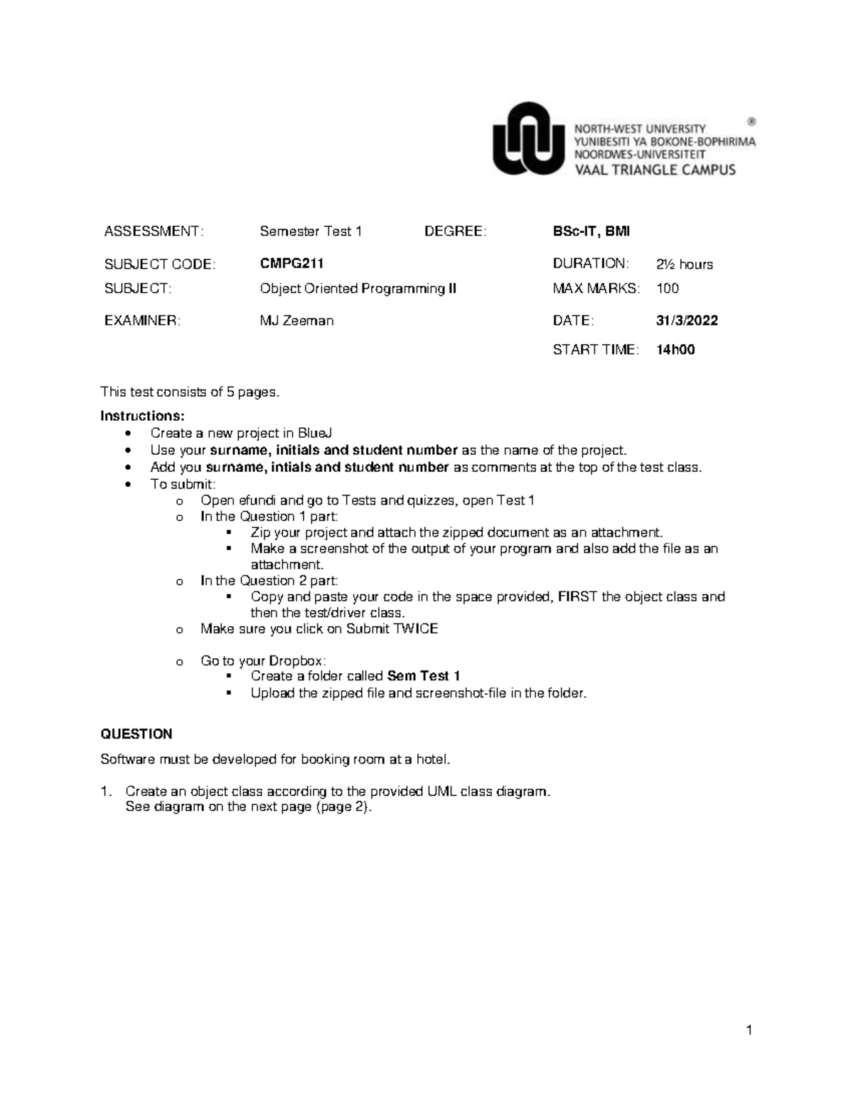 CMPG 211 Sem Test 1 Eng - 2022 - ASSESSMENT: Semester Test 1 DEGREE ...