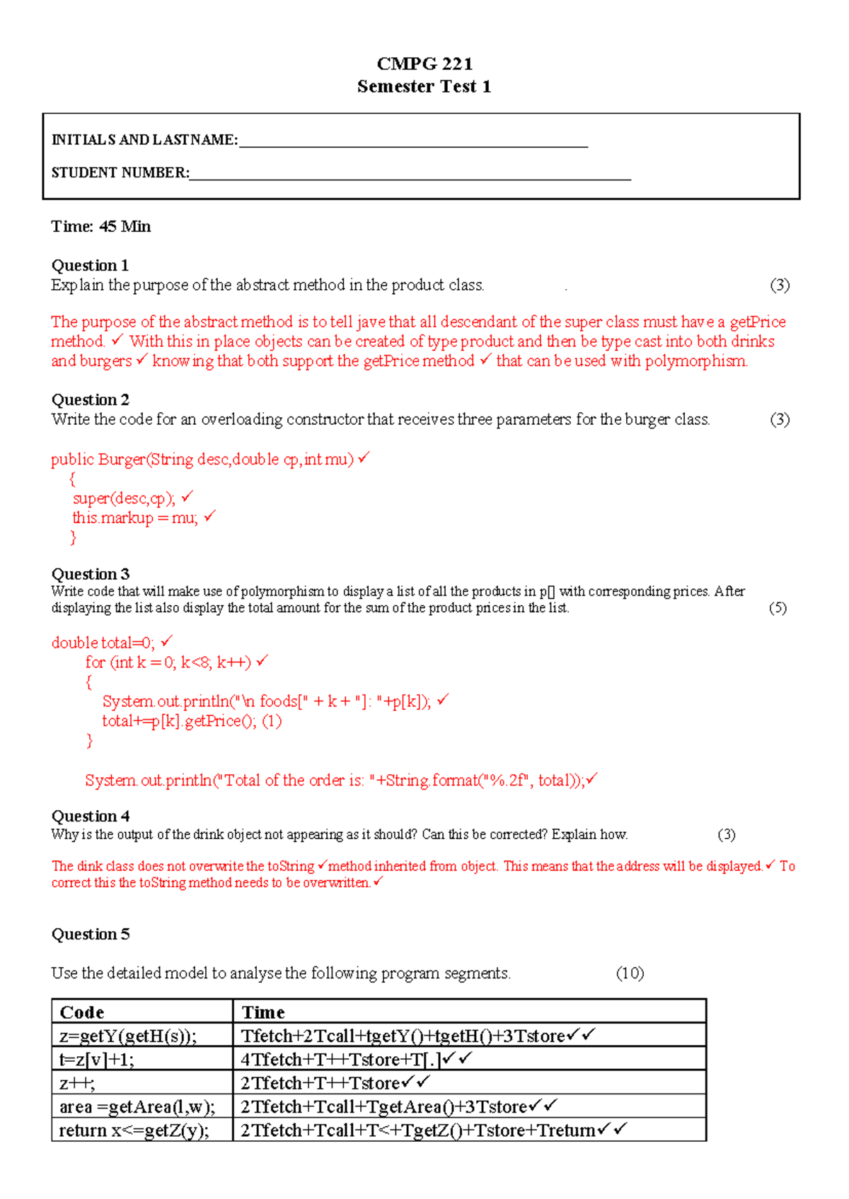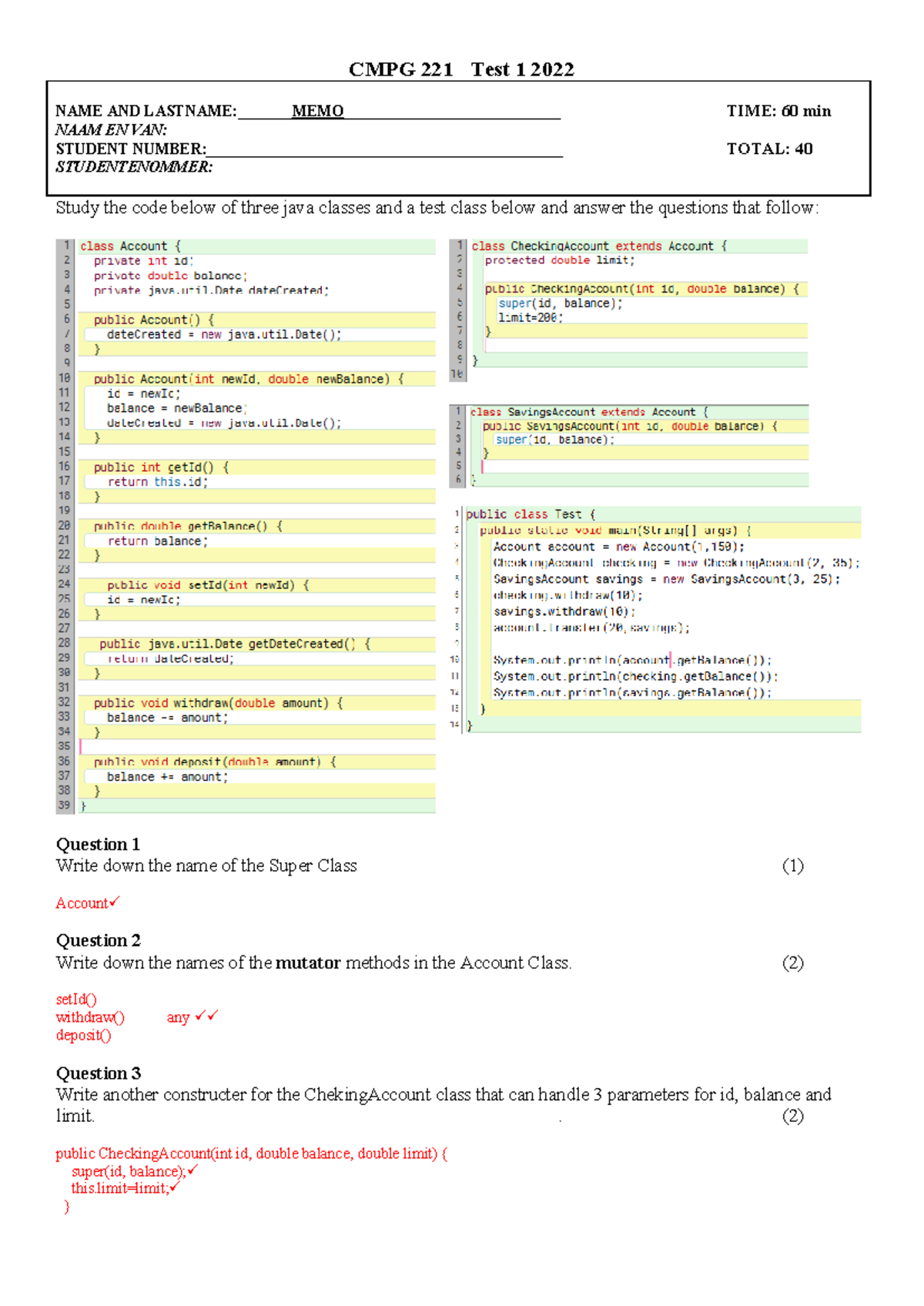 CMPG 221 Test 1 Java Class Memo and Solutions 2022 - Studocu