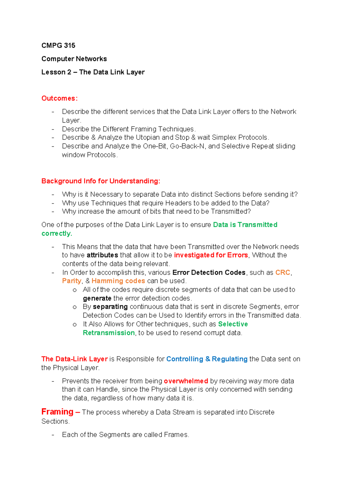 SU3 - CMPG 315: Lesson on Data Link Layer Concepts and Protocols - Studocu