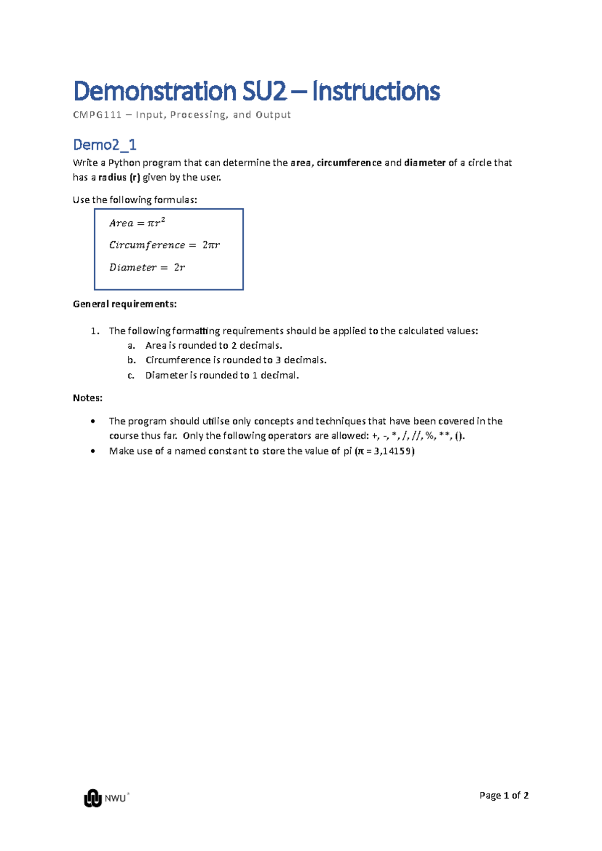 CMPG111 - NWU - Introduction to Computing and Programming - Studocu