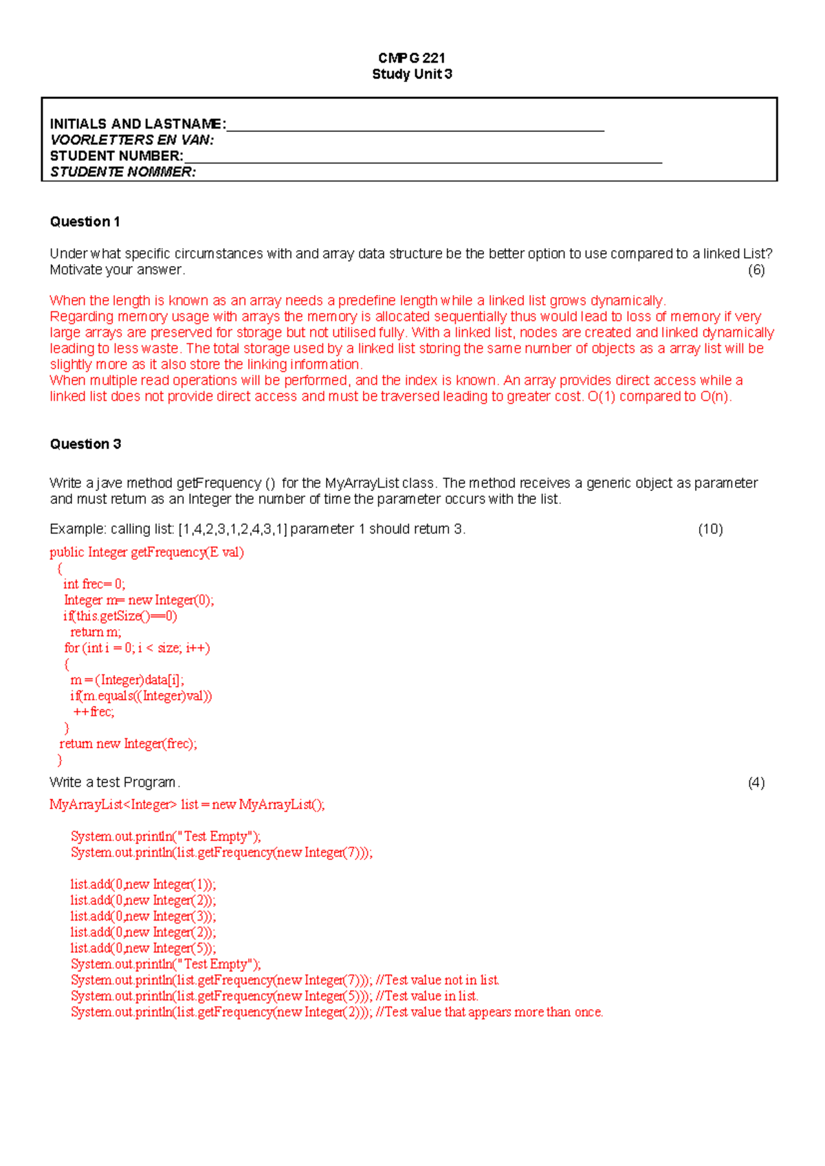 CMPG 221 Semester Test 2 SU3 g2 Memo Answers and Java Code - Studocu