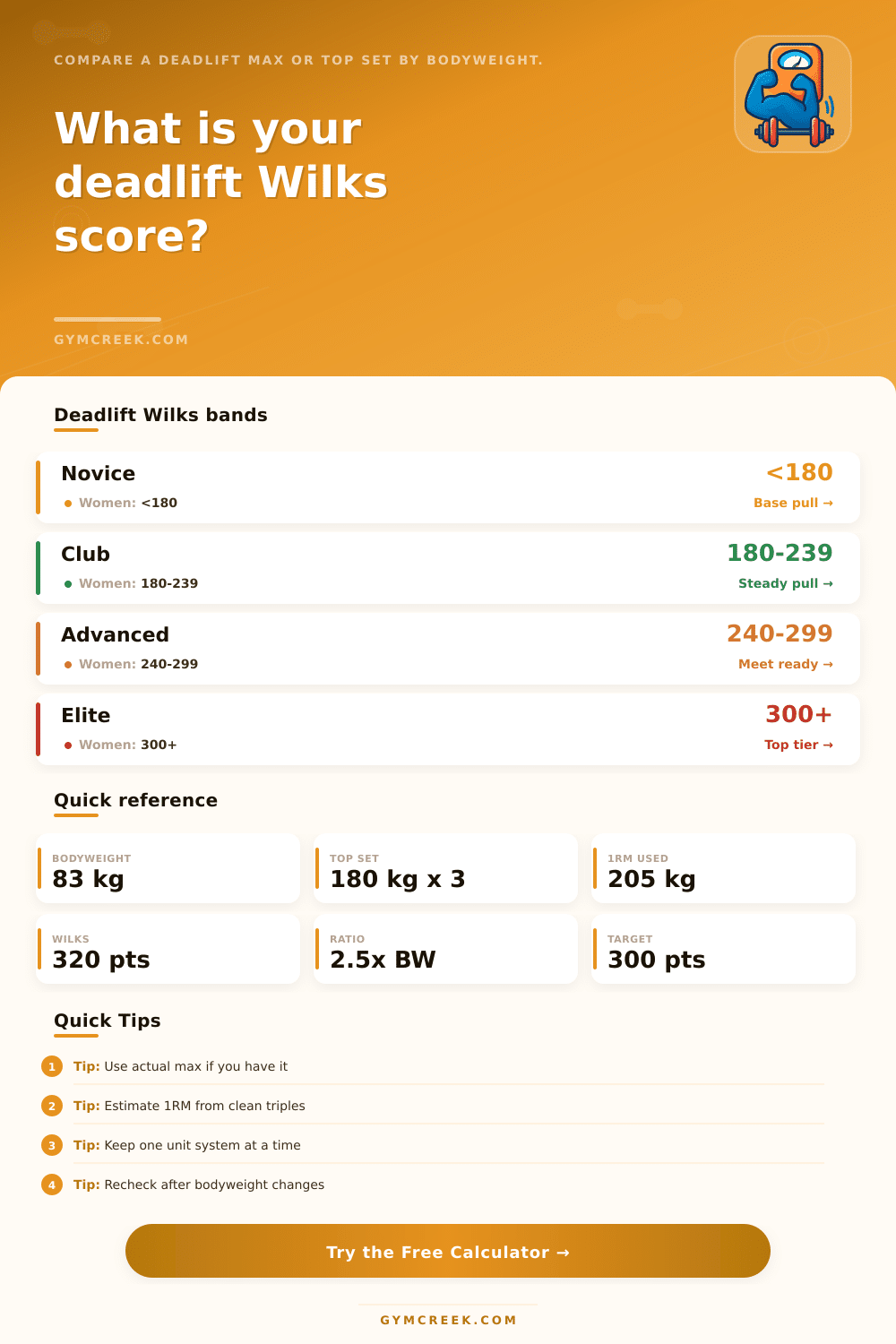 Wilks Calculator for Deadlift - GymCreek