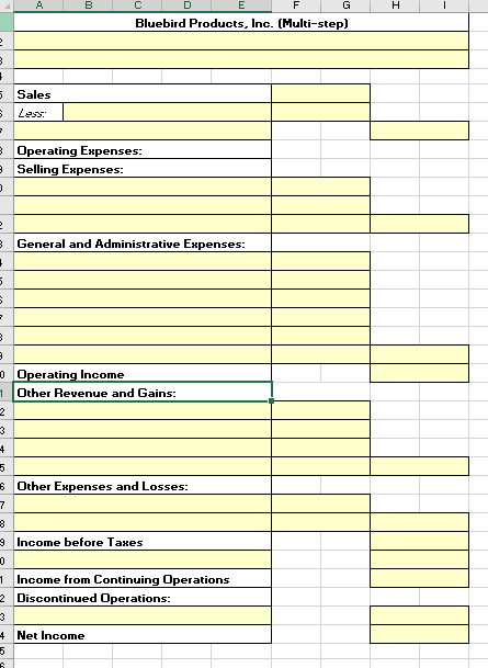 Solved Preparing a Multi-Step Income Statement using Excel's | Chegg.com