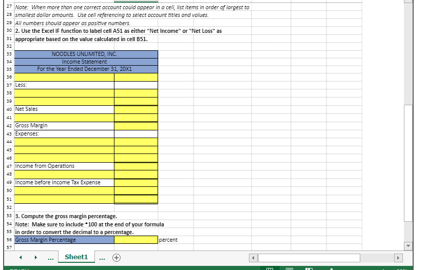 Solved Preparing a Multistep Income Statement using Excel's | Chegg.com