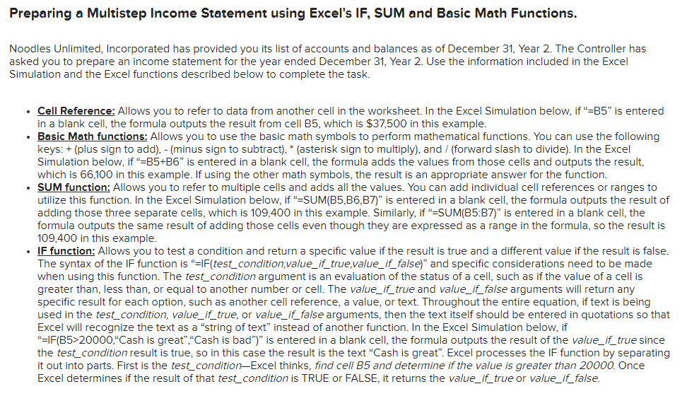 Preparing a Multi-Step Income Statement using Excel's | Chegg.com