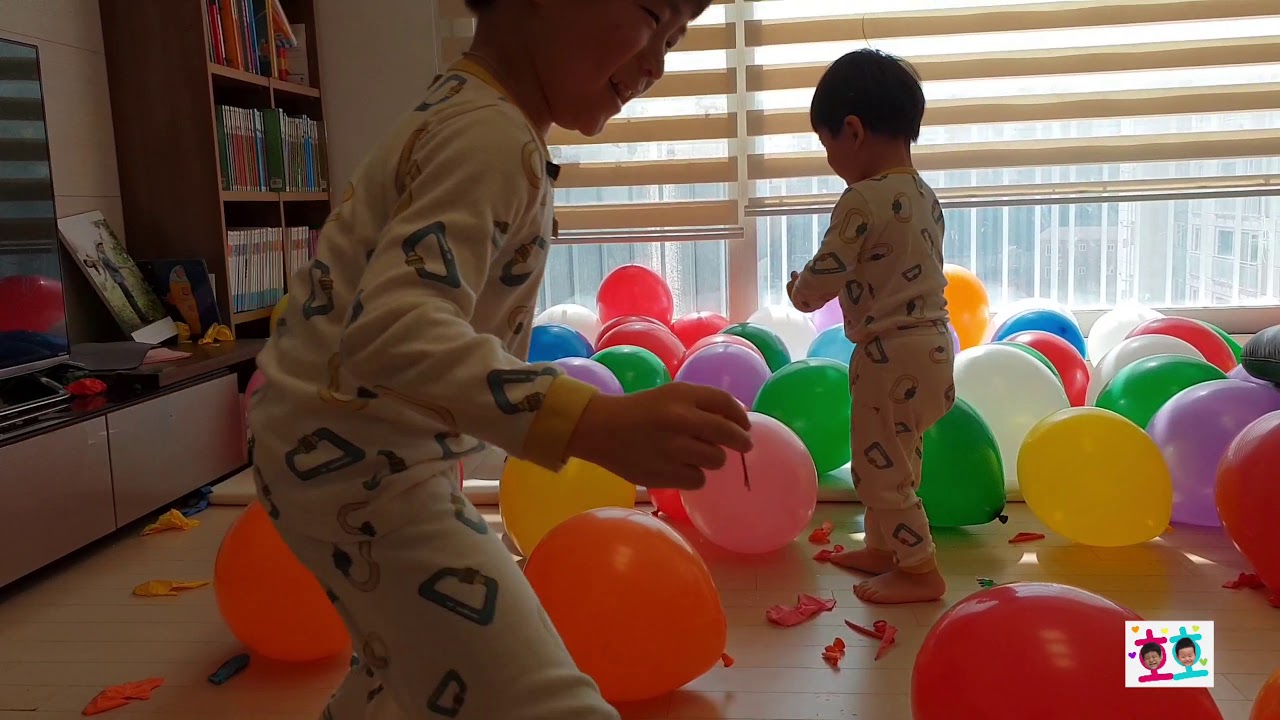 첫 풍선 터트리기♡ 할 수 있다!!#놀이 #흔한남매 #귀여운 #어린이 #사랑스러운 - YouTube