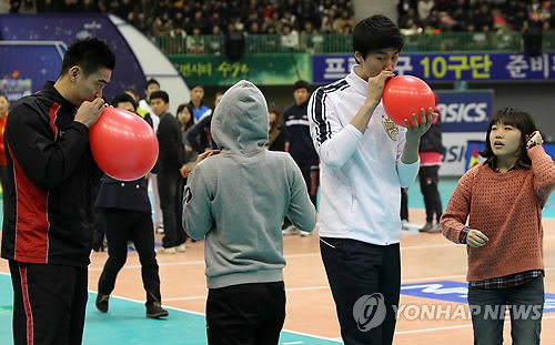 풍선터트리기, 발로 상대편 풍선을 터트리는 경기가 열렸다. - 오마이포토