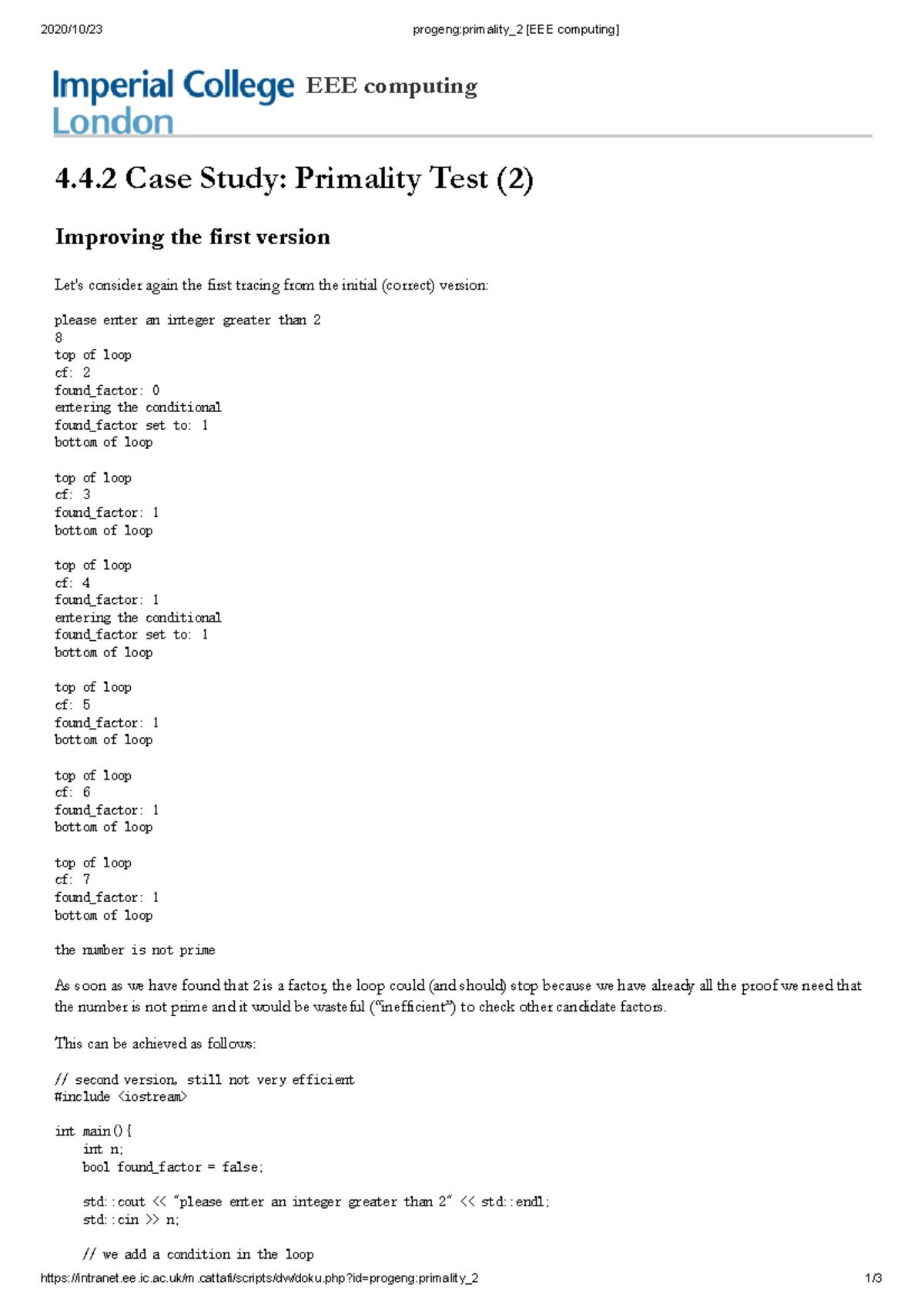 Case Study: Primality Test (2) - Improving the First Version - Studocu