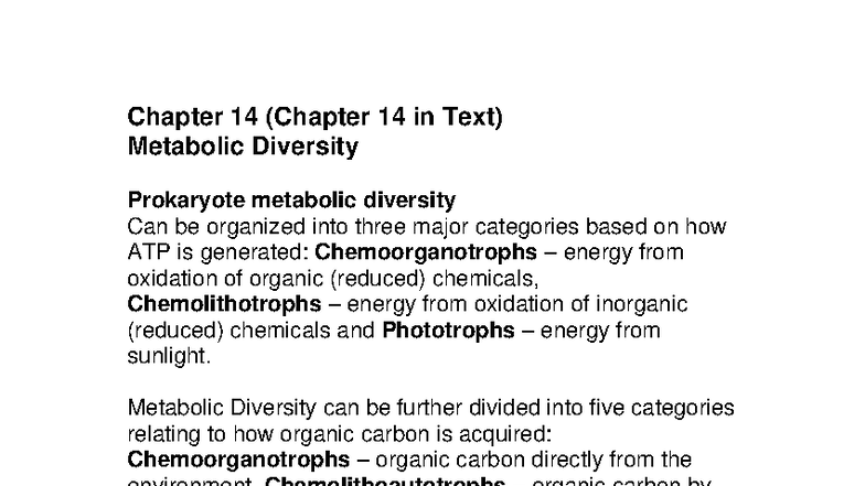 Chapter 14: Metabolic Diversity in Prokaryotes and Photosynthesis - Studocu