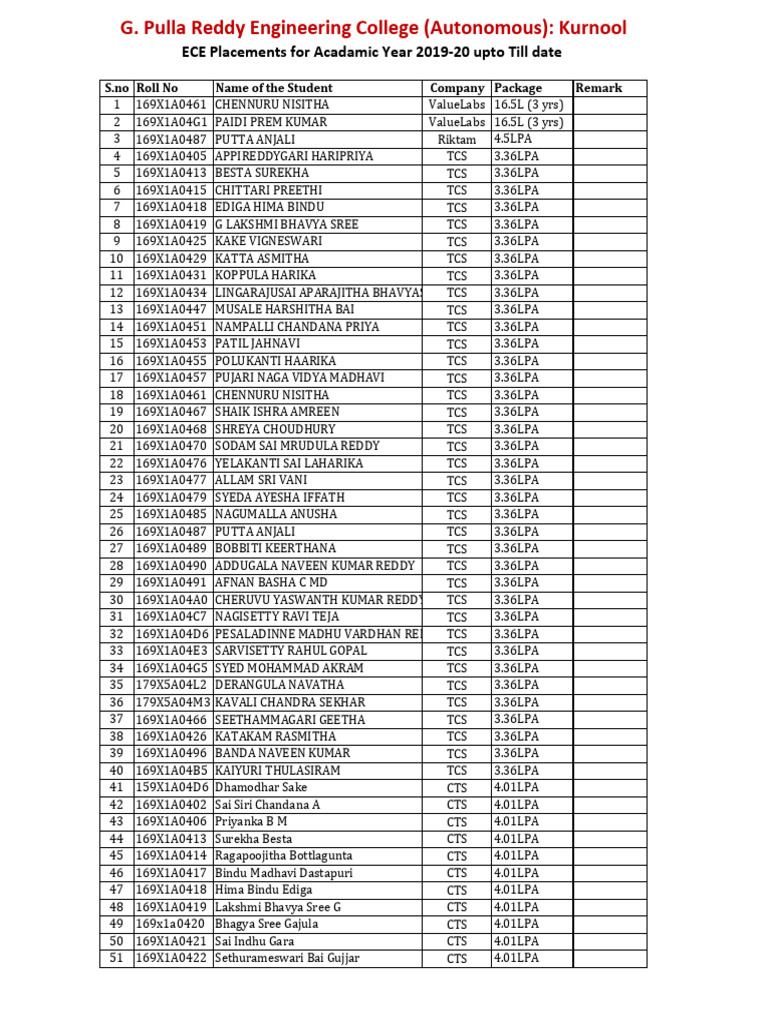 2019-20 ECE Placement Data | PDF