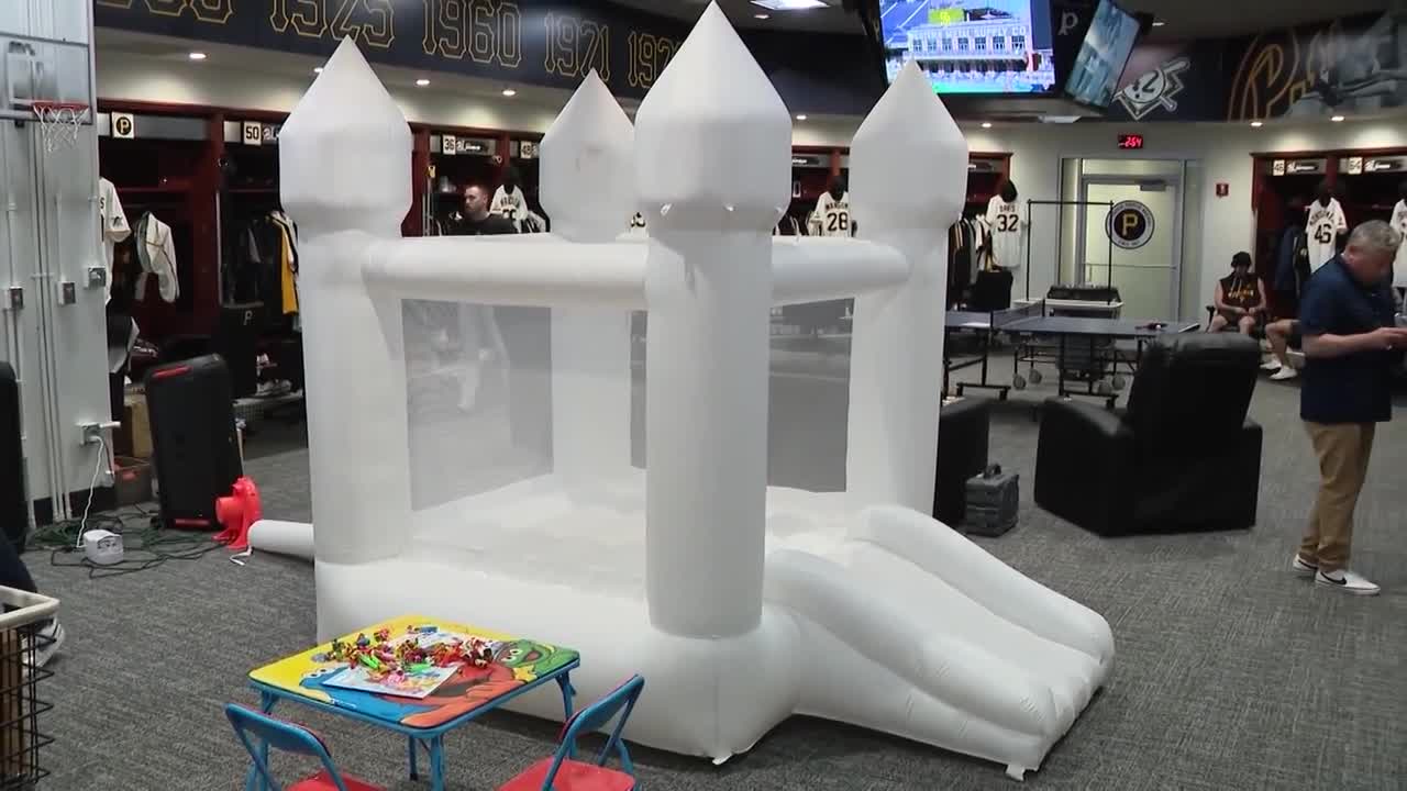 Why is a bounce house in the Pittsburgh Pirates' clubhouse?