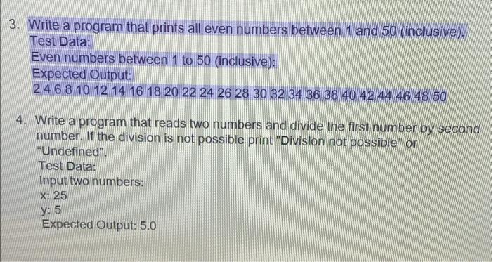 Solved 3. Write a program that prints all even numbers | Chegg.com