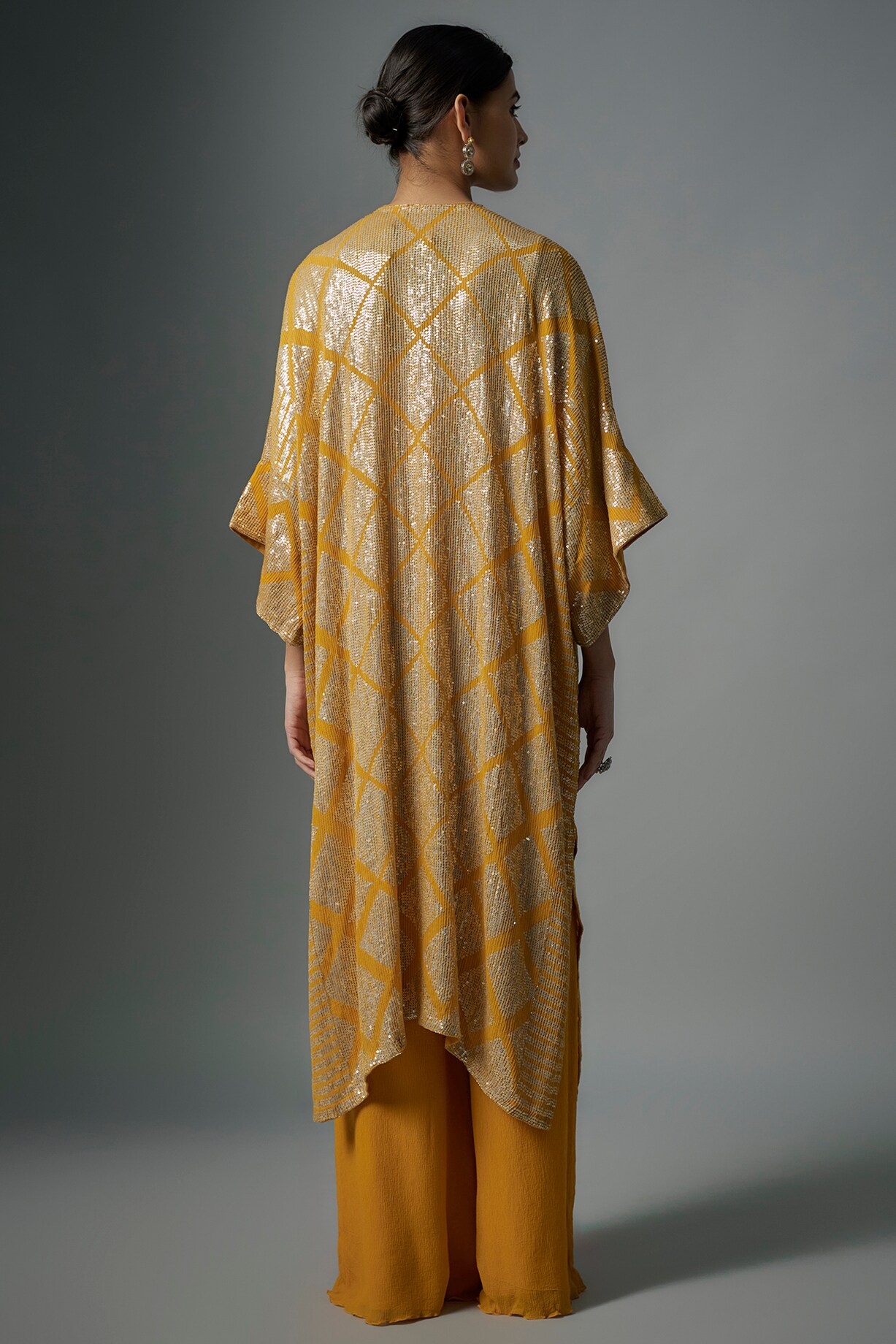 Pumpkin Orange Chiffon Sequins Embroidered Kurta Set Design by Nakul ...