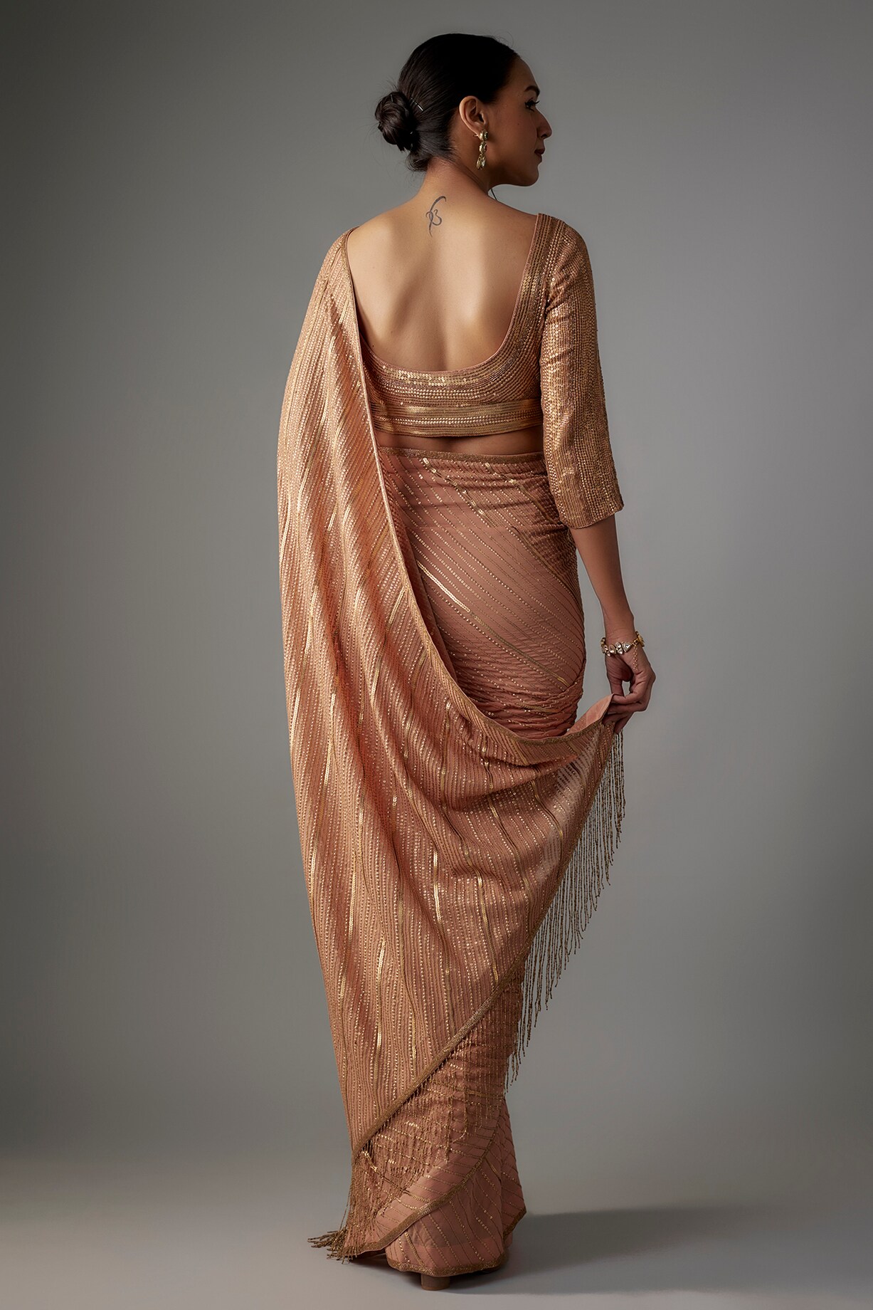 Kadambari Pink Chiffon Sequins Embroidered Saree Set Design by Nakul ...