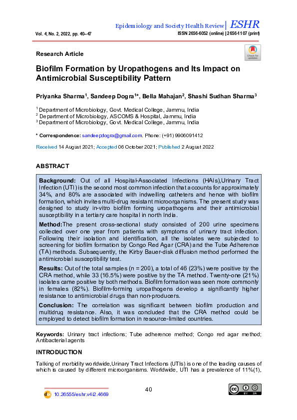 (PDF) Biofilm Formation by Uropathogens and Its Impact on Antimicrobial ...