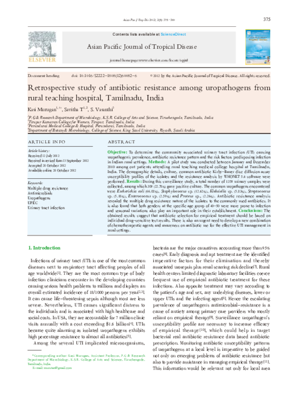 (PDF) Retrospective study of antibiotic resistance among uropathogens ...