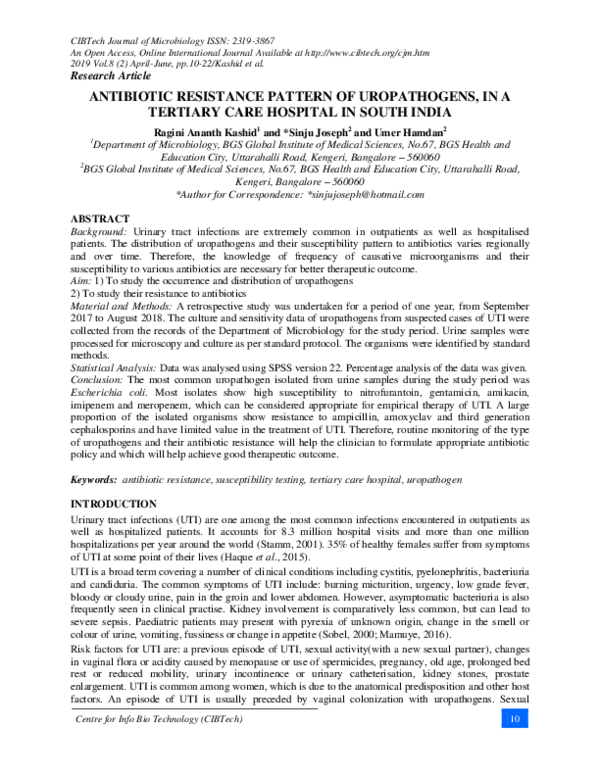 (PDF) Antibiotic Resistance Pattern of Uropathogens, in a Tertiary Care ...