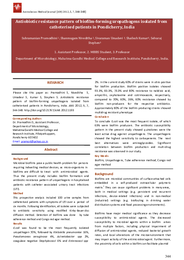 (PDF) Antiobiotic resistance pattern of biofilm forming uropathogens ...