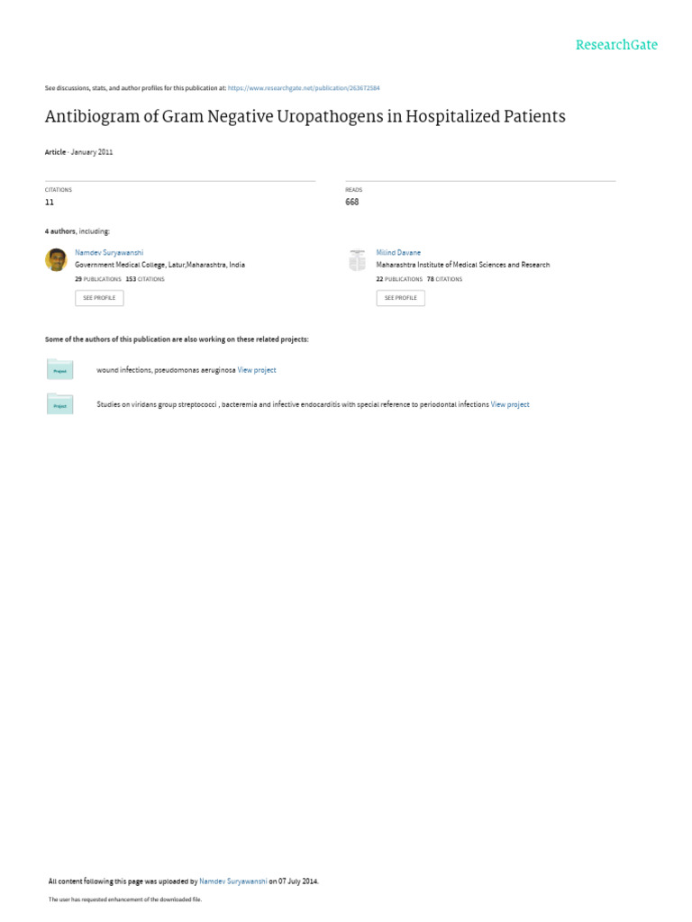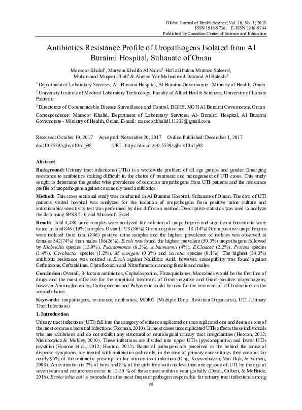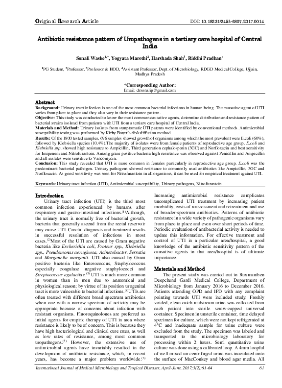 (PDF) Antibiotics Resistance Pattern of Uropathogens.