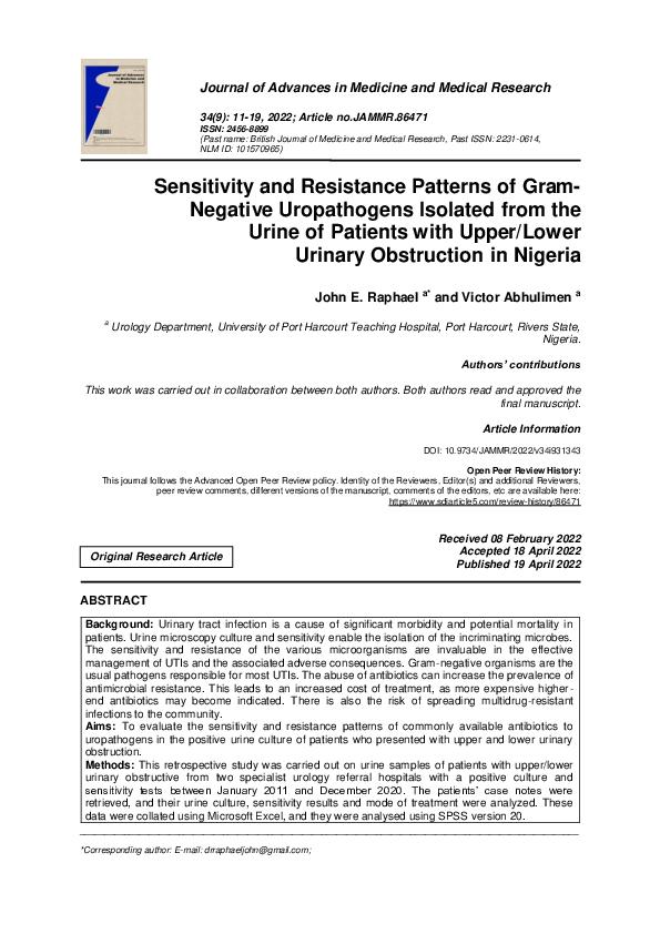 (PDF) Sensitivity and Resistance Patterns of Gram-Negative Uropathogens ...