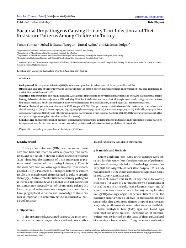 (PDF) Antibiotic Resistance Pattern of Uropathogens in Northeastern of Iran