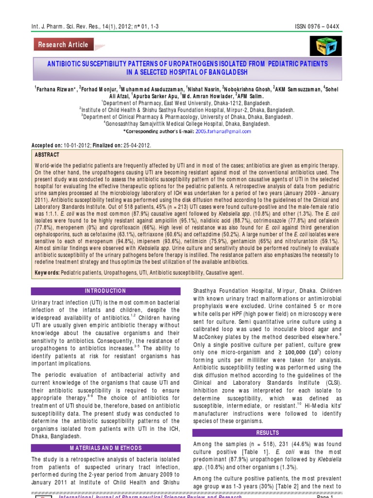 (PDF) Antibiotic Drug Resistance Pattern of Uropathogens in Pediatric ...