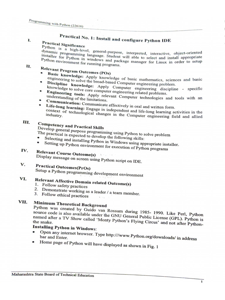Based on this image's title: “Python Manual 1-3 Practical | PDF”