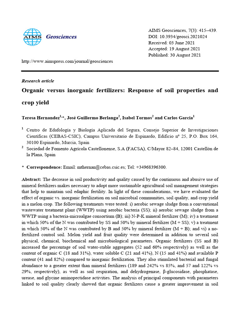 Organic Versus Inorganic Fertilizers Response of S | PDF | Soil ...