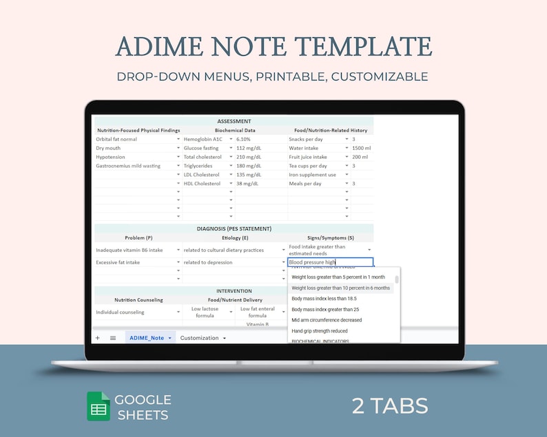 ADIME Note Template for Dietitians Nutrition Documentation Diet Therapy ...