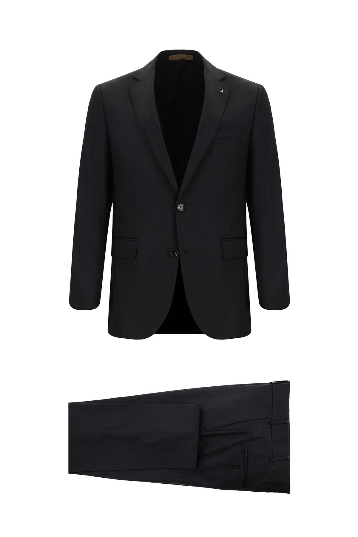 Erkek Siyah 6 Drop Regular Fit Standart Kesim Yünlü Takım Elbise | Kiğılı