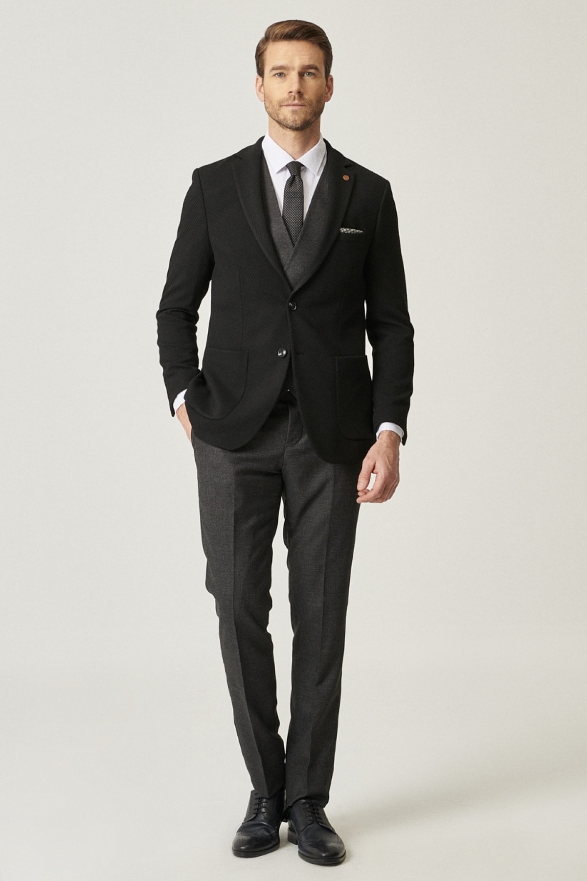 Altınyıldız Classics Men's Black-gray Slim Fit Slim Fit Combined Vested ...