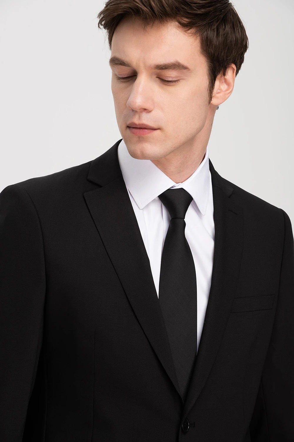 34 Black Slim Fit Wool Suit for Men - Basic Two Button with Optional Vest